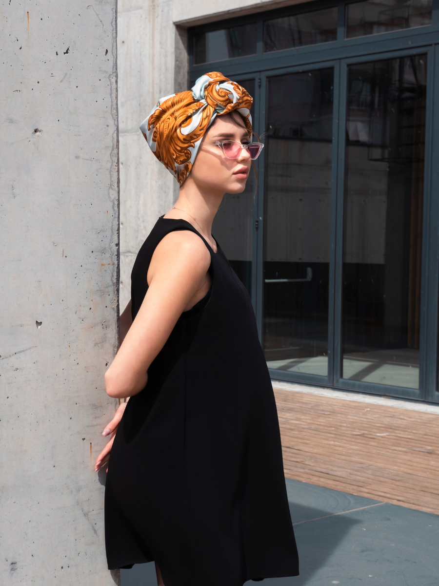 - 90 x 90 cm boyutlarındaki bu Twill dokuma eşarp, klasik ve zamansız bir şıklık sunar.