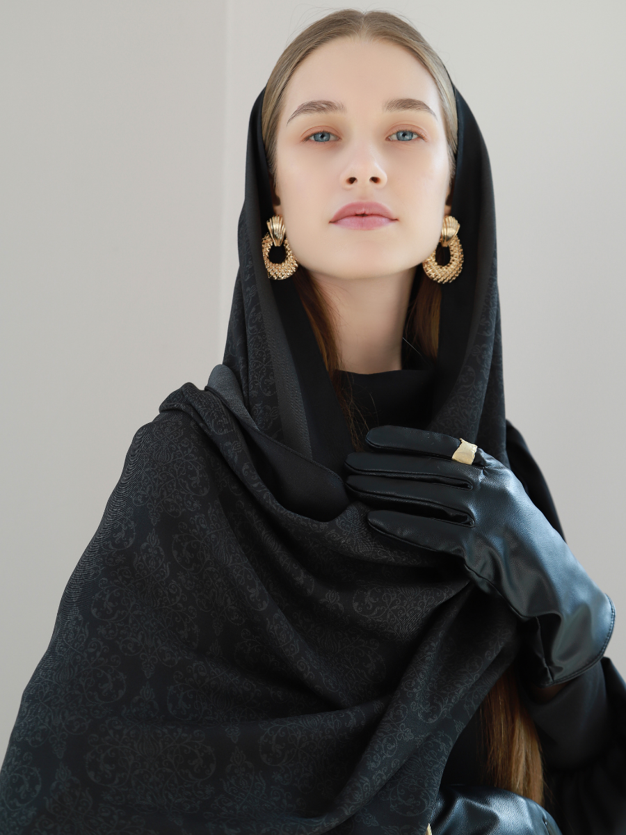 Mahrem Siyah Floş Viskon Şal, siyahın zamansız asaletiyle floş viskon kumaşın yumuşak ve akışkan dokusunu bir araya getirir. Sade ama güçlü duruşu, şala gizemli ve etkileyici bir karakter kazandırır.