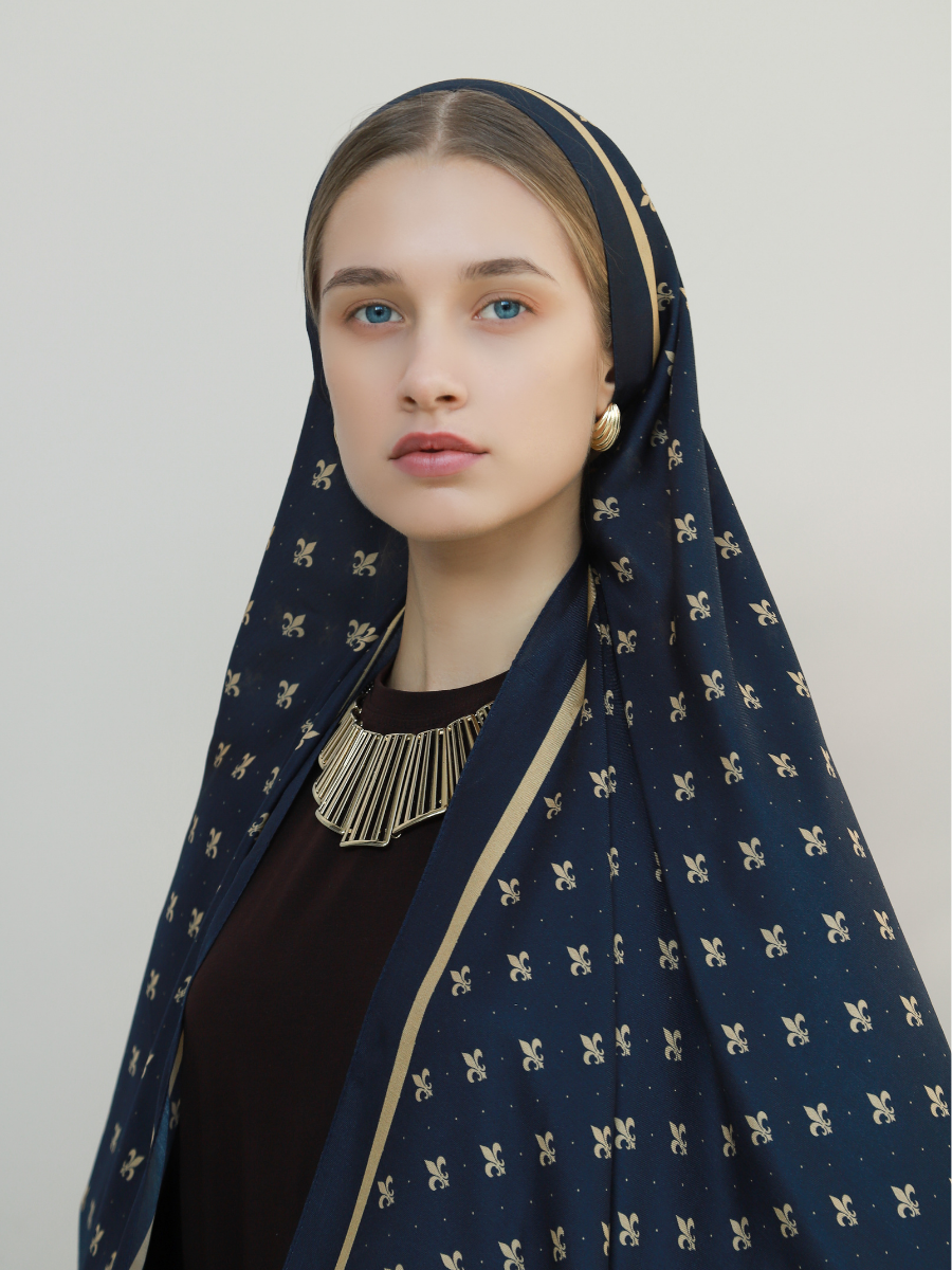 Safir Floş Viskon Şal, ilhamını bu kıymetli taştan alır. Safirin derin ve sofistike mavisi, şalın